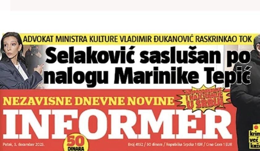 ал зато Селаковић јесте"žrtvovan": https://pbs.twimg.com/media/G7ZSS3gXMAAU2ro?format=jpg&name=900x900