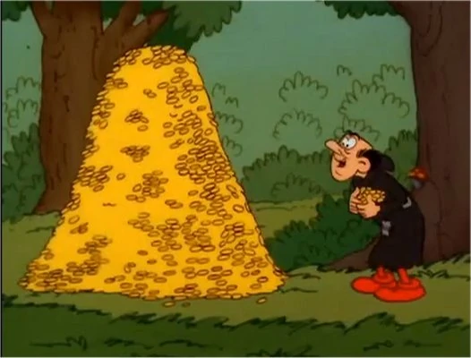 6. Gargamel. Oličava nemilosrdnost kapitalističkog poretka, želi nevine male plave proletere da pretvori u zlato. Slika govori više od reči… Dodajmo ovome poguren stas, veliki nos, ofucanu odeću, tvrdičluk, bavljenje magijom, i dobićemo tipičnu sliku Jevrejina iz antisemitske ikonografije 19. veka. Ko ne veruje, neka pogleda.